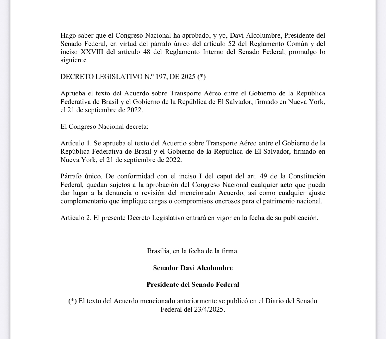 Brazilian Senate – Legislative Decree No. 197/2025